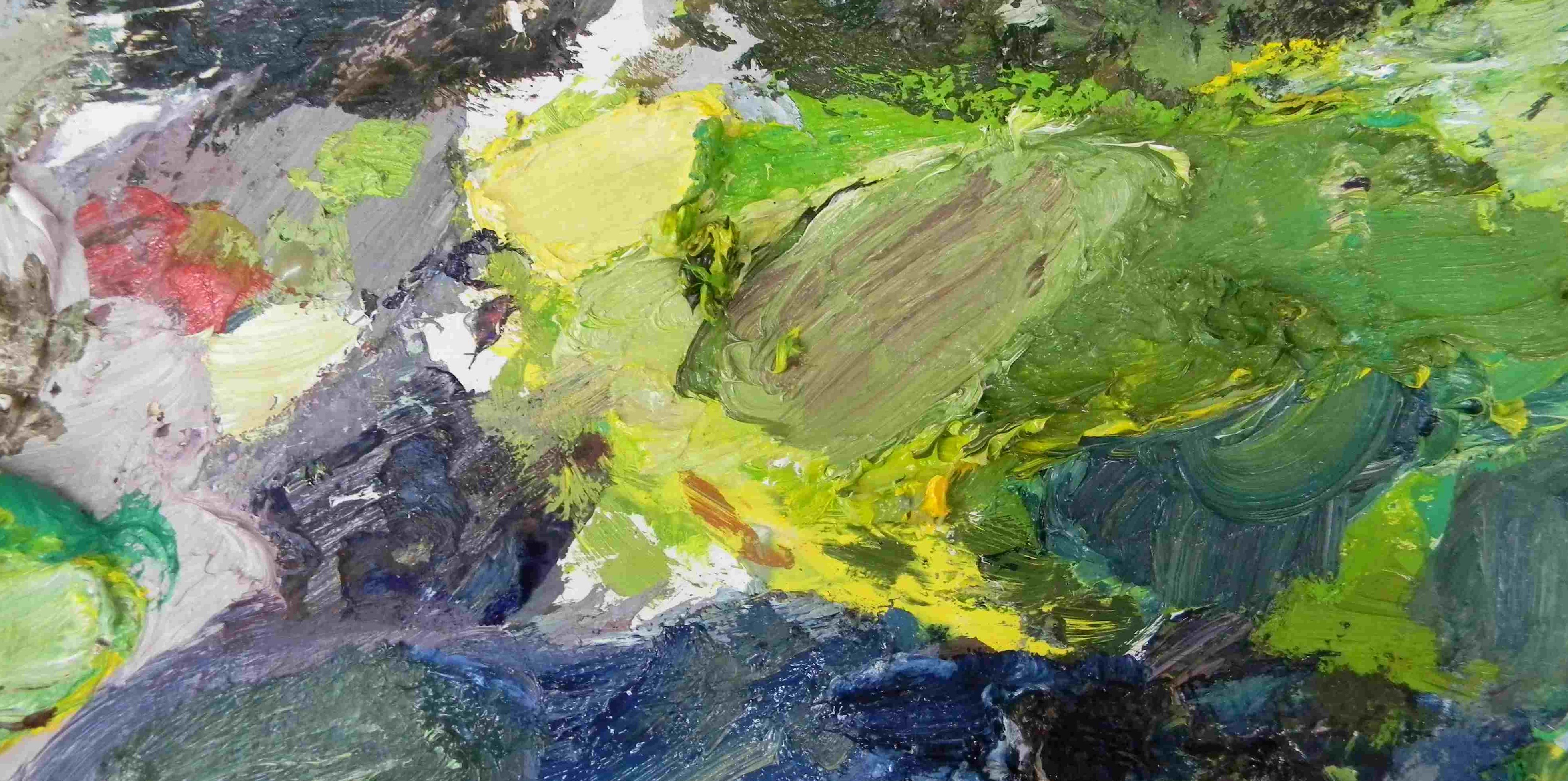 Meist und besonders in der Landschaft reagiere ich malerisch direkt auf das, was ich sehe. Die Bilder werden a la prima durchgemalt und dokumentieren so den frischen und lebendigen Bezug zum Motiv. Meist beiße ich mich dann an einem Thema fest, es entsteht dann eine interessante Abfolge von Bildern. So auch beim Walchensee, denEntwässerungsgräben, den Frühstückstischen, unter Berücksichtigung bestimmter Malgründe, Kompositionsschemata, Farbzusammenhänge oder Leinwandformate.